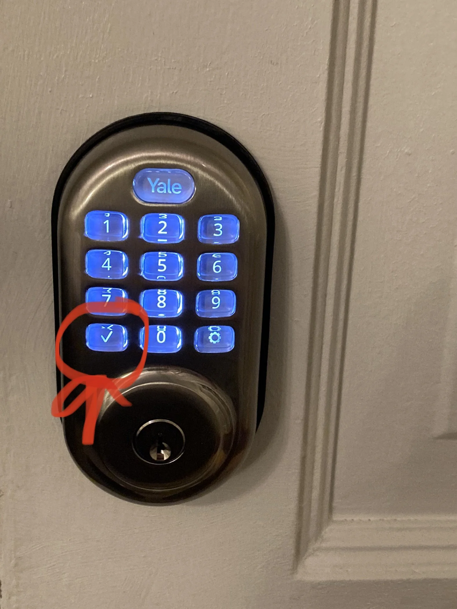Make sure everyone in the room has the code, the door will autolock in one minute. To lock when leaving hit any key.